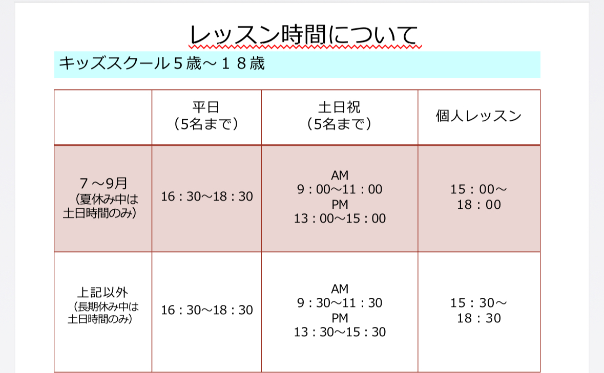 スクール開催曜日:月金土日祝