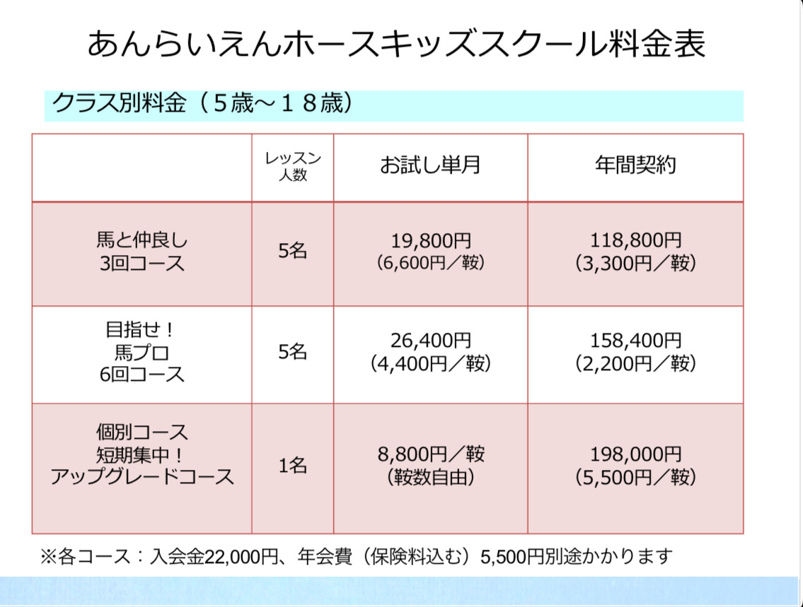 キッズスクールの料金🐎✨